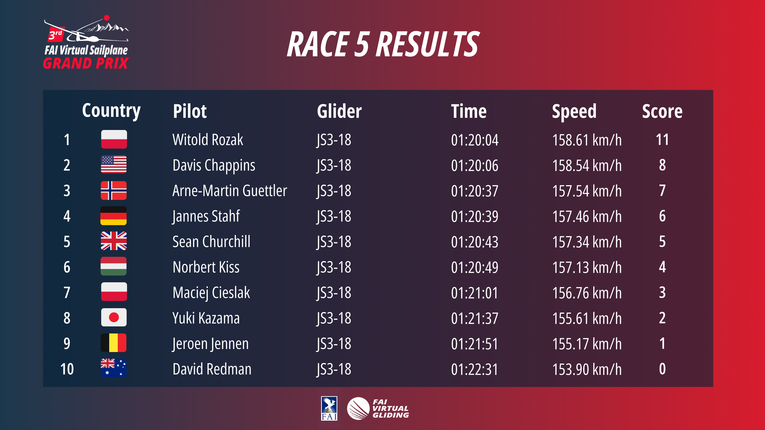 Witold Rozak (POL), the championship leader, didn't need to win today to qualify. But champions don't fly for fun. In a display of pure dominance, Rozak stamped his authority on the series with his second victory, proving he is the undisputed pilot to beat going into the finale.